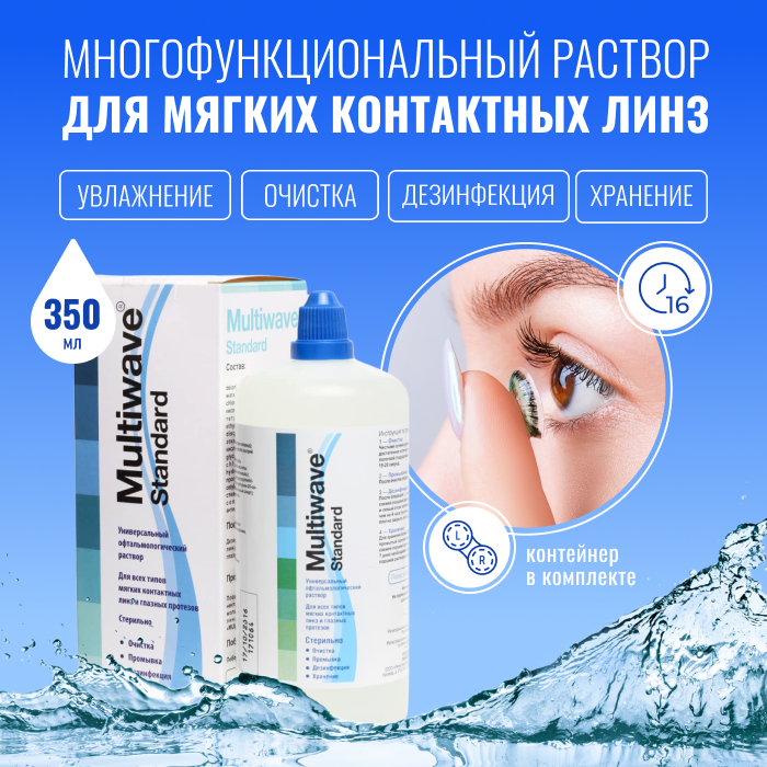 Раствор Multiwave Standart для ухода за контактными линзами с контейнером, 350 мл
