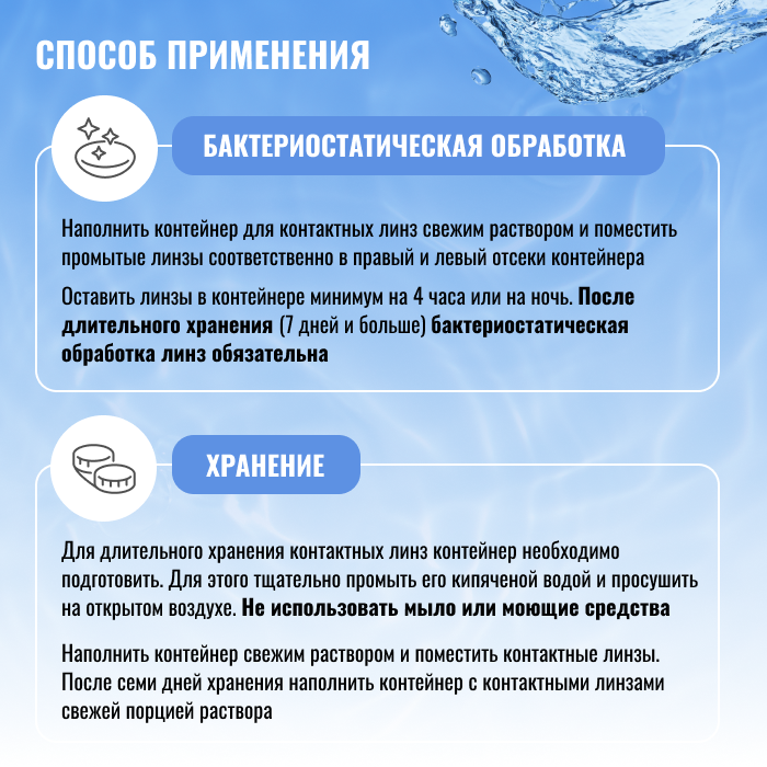| Минусы: | Нет контейнера для хранения линз (в описании сказано, что контейнер есть) |