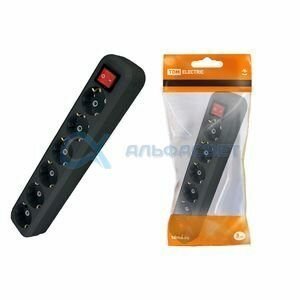 Колодка розеточная 6 гнезд 2П+З с выключателем16А 250В черная TDM (TDM) SQ1806-0140