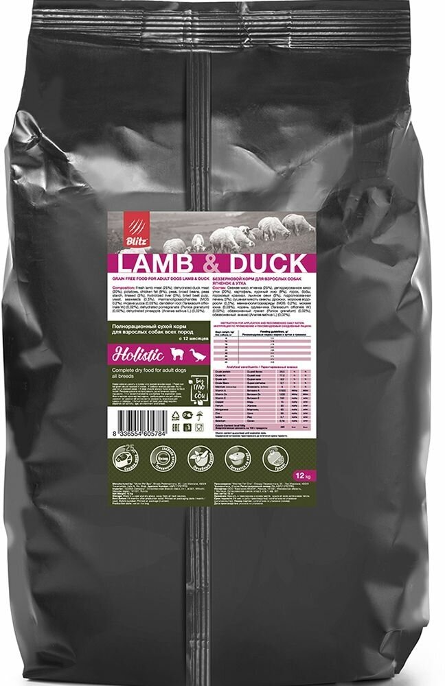 Корм Blitz Holistic Lamb & Duck (беззерновой) для собак, ягненок и утка, 12 кг