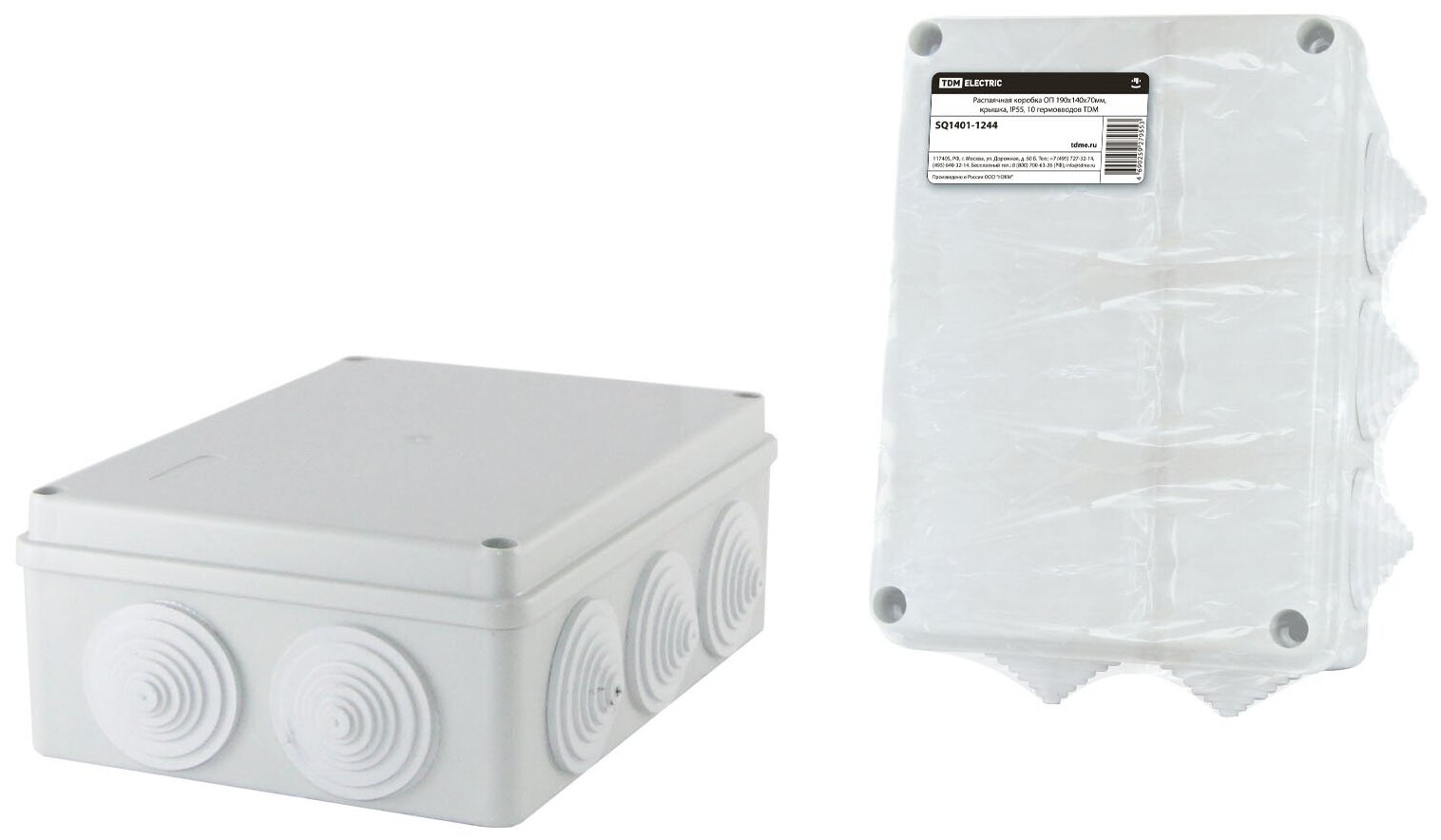 TDM SQ1401-1244 Распаячная коробка ОП 190х140х70мм, крышка, IP55, 10 гермовводов, инд. штрихкод,