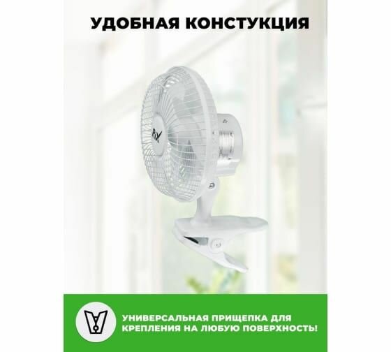 Бытовой настольный вентилятор RIX RDF-1500W, прищепка, цвет белый, 15Вт 38214