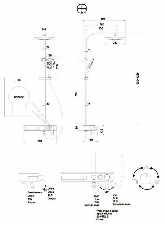 Душевая система 242 мм Bravat Meissen F6277312CP-A-ENG