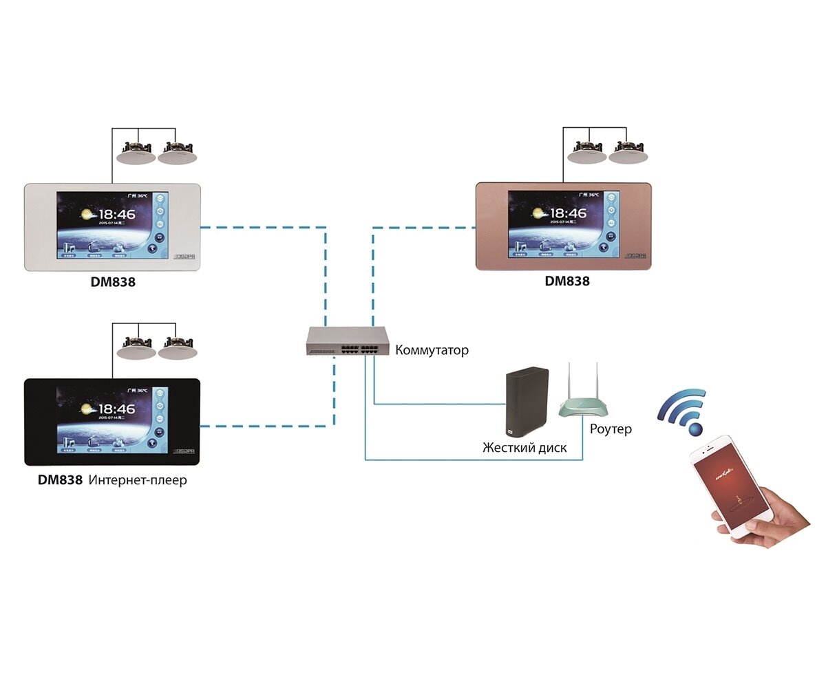 DSPPA DM-838B Активный мультиформатный аудио плеер. 2х20Вт/ 8Ом. Установка в стену. 5" сенсорный экран. Таймер. AM/FM тюнер, SD-карта. Лин. выход. Blu интересное: