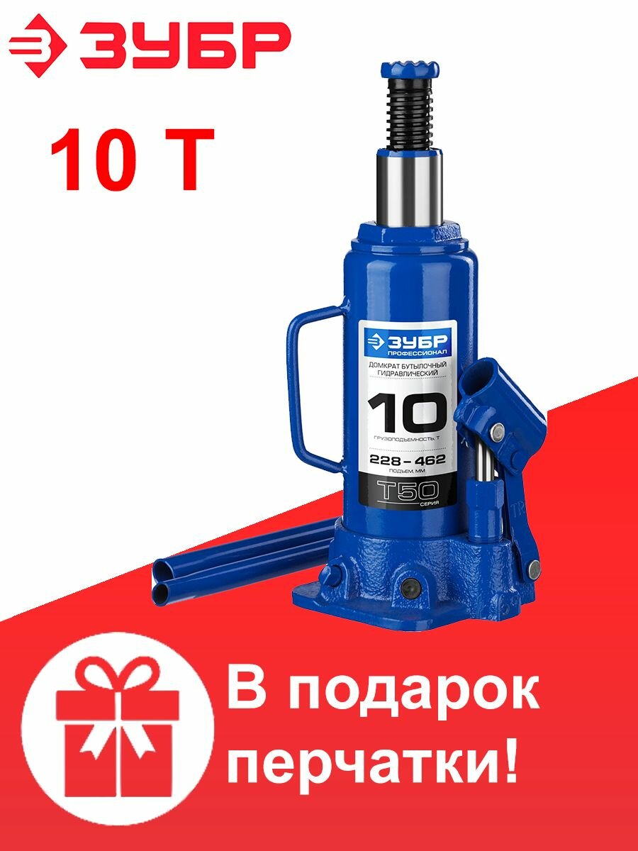 Гидравлический бутылочный домкрат 10т, 228-462мм, ЗУБР Профессионал T50 43060-10_z01