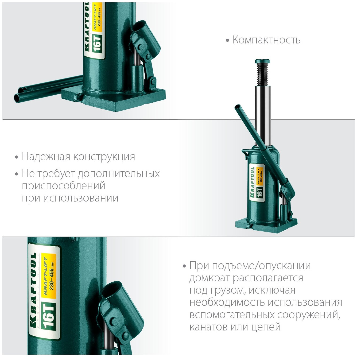 KRAFTOOL KRAFT-LIFT 16т, 230-460мм домкрат бутылочный гидравлический, KRAFT BODY