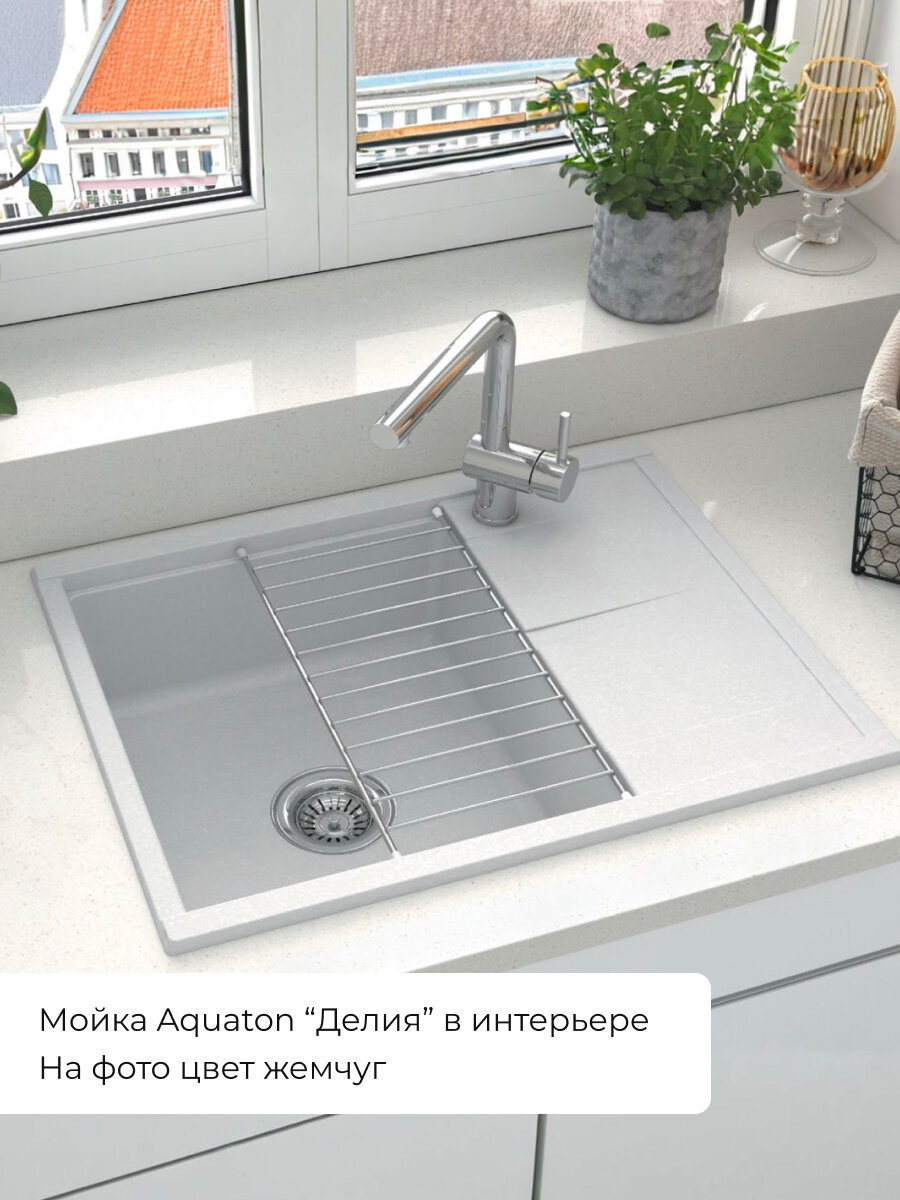 Кухонная мойка AQUATON Делия 65х51.6х21.8 литьевой мрамор, цвет Жемчуг (1A718632DE240)