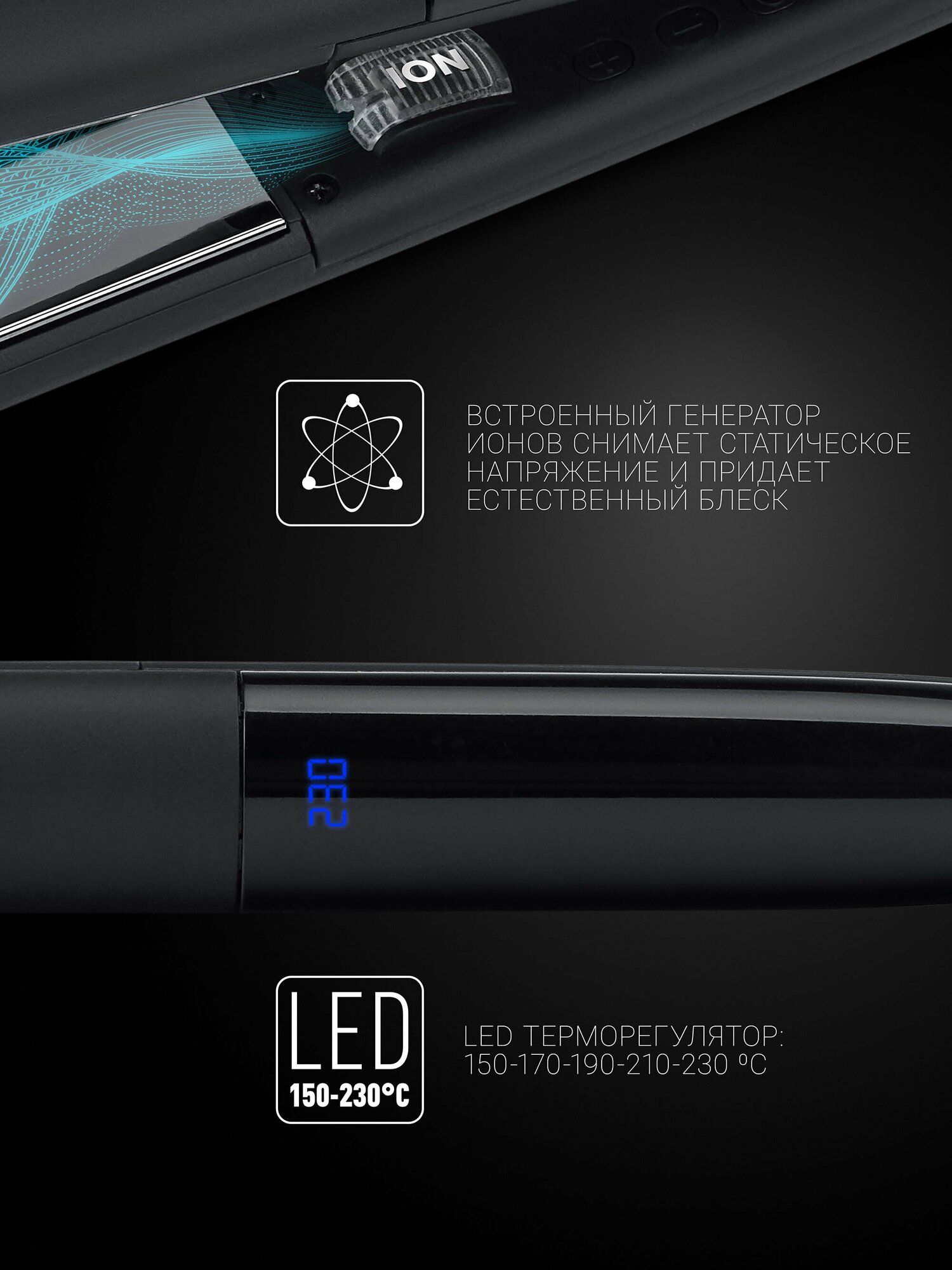 Выпрямитель для волос Polaris PHS 2097Ti черный [230°C, режимов-5, 60 мм, покрытие-титановое, генератор ионов] интересное: