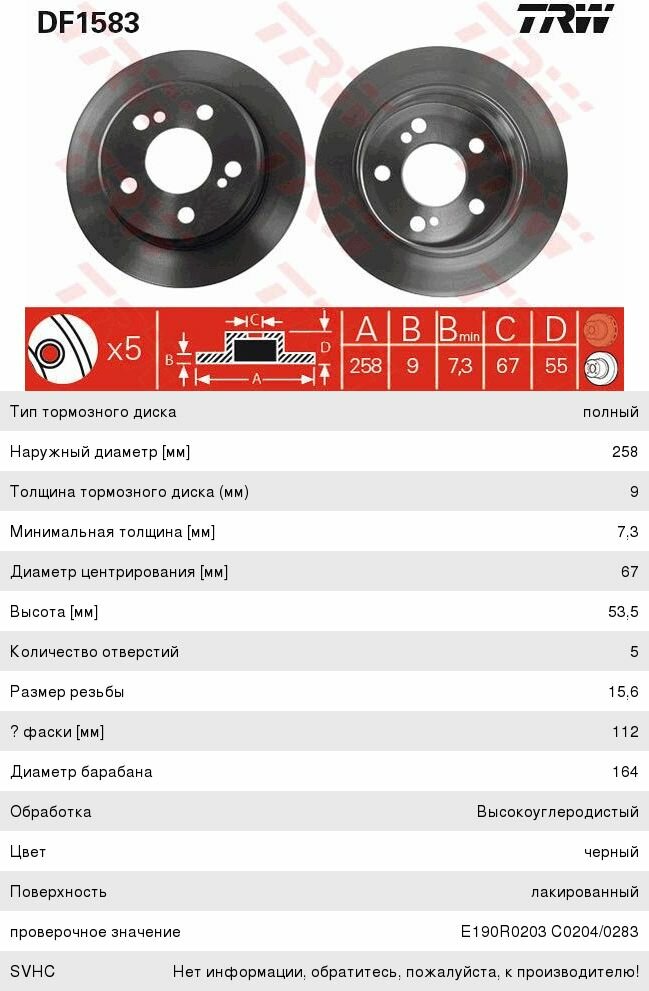 СохранитьTRW DF1583 Тормозной диск интересное: