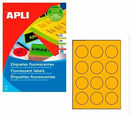 Этикетки APLI, А4, d=60, 12шт/л, 20л, круглые, флюор. желтые 02866 интересное:
