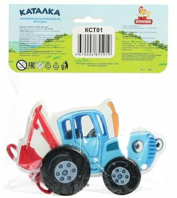Каталка "Синий трактор" 12 см. Буратино игрушки из дерева KCT01 интересное: