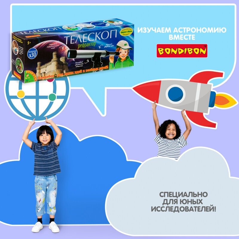 Набор для опытов Bondibon Науки с Буки Телескоп-рефрактор, увеличение х30, от 5 лет