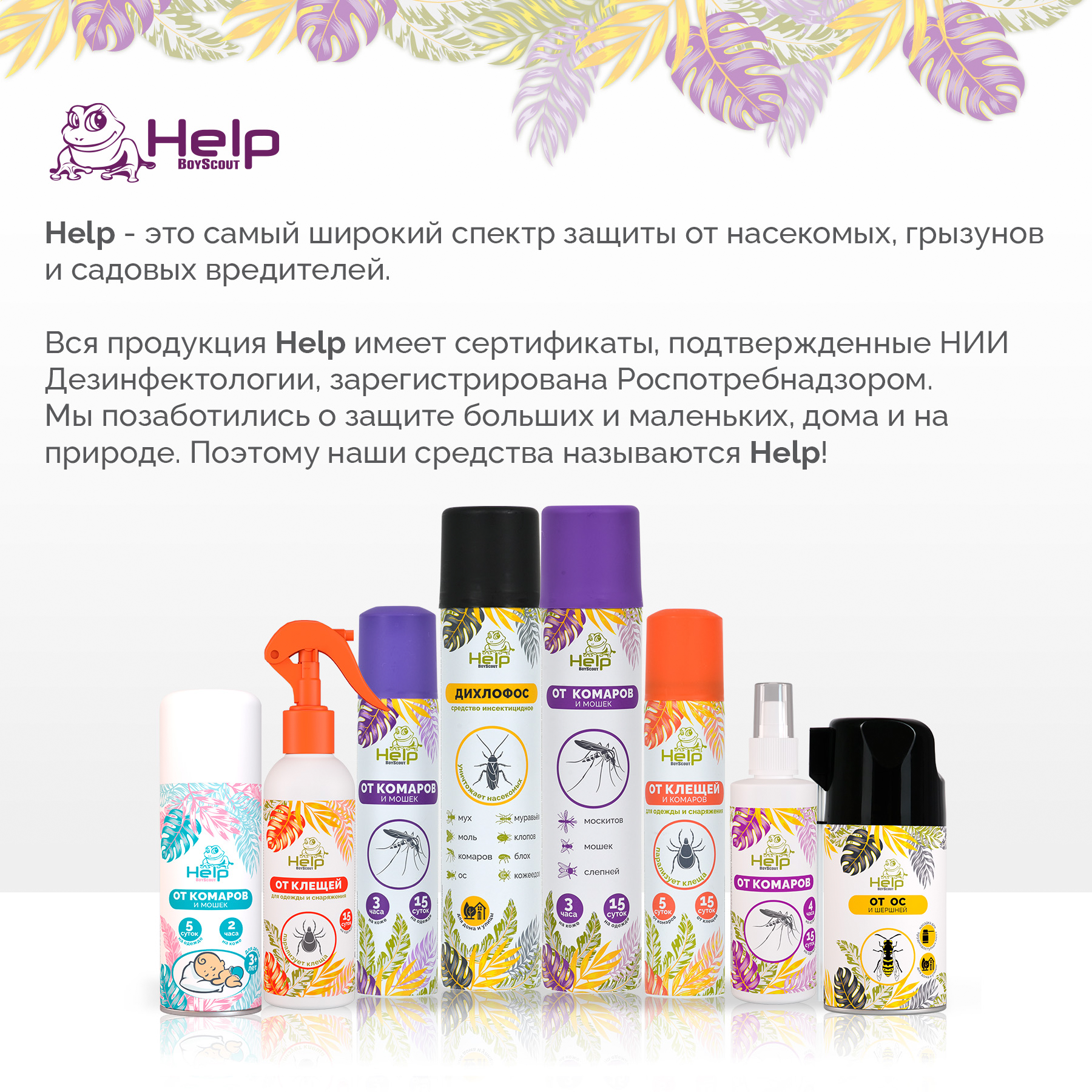 Репеллентный аэрозоль от комаров и мошек HELP Сирень, 75 мл 6 80218