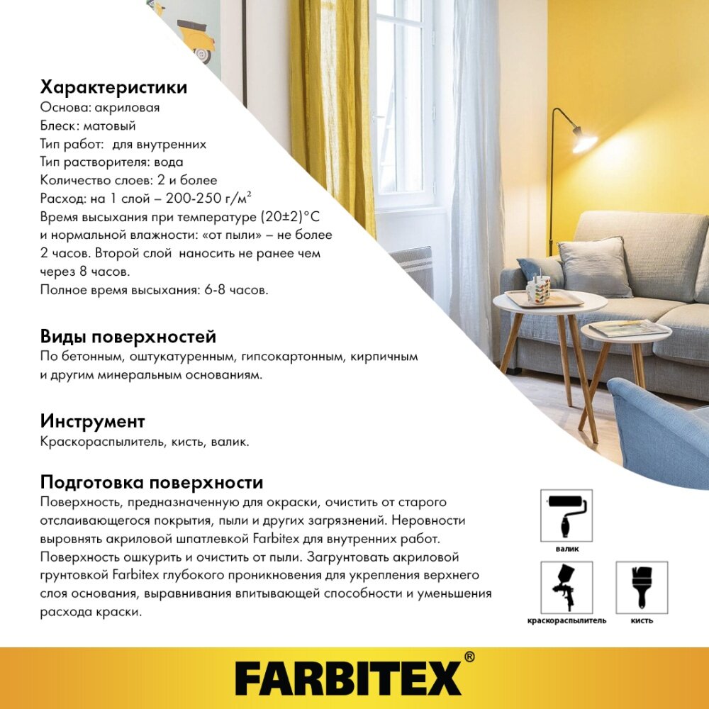 Краска акриловая интерьерная FARBITEX (Артикул: 4300001551; Фасовка: 6 кг)
