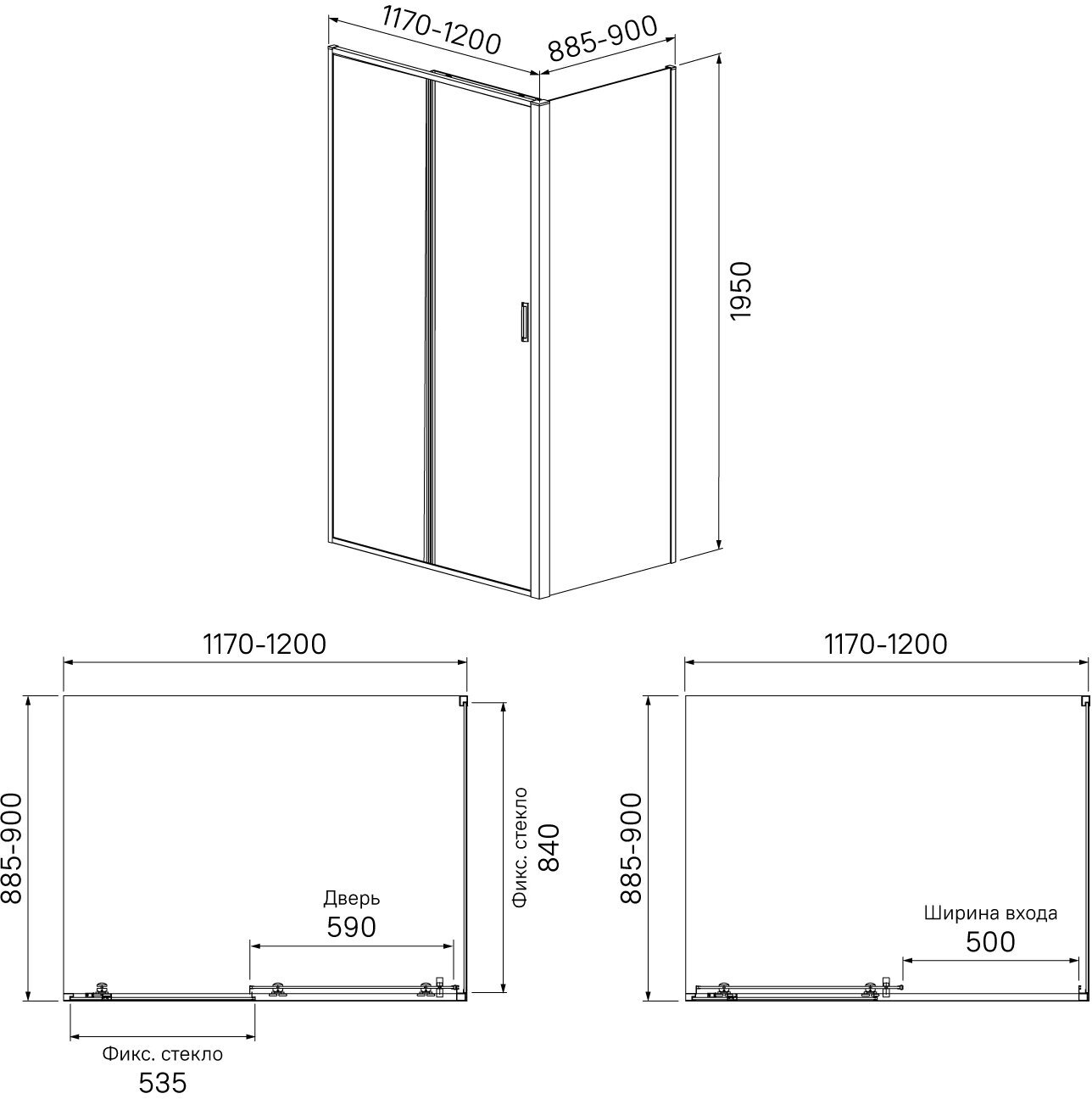 Душевое ограждение IDDIS Zodiac глянцевый алюминиевый профиль 120х90х195 см (ZOD6CS0i23)