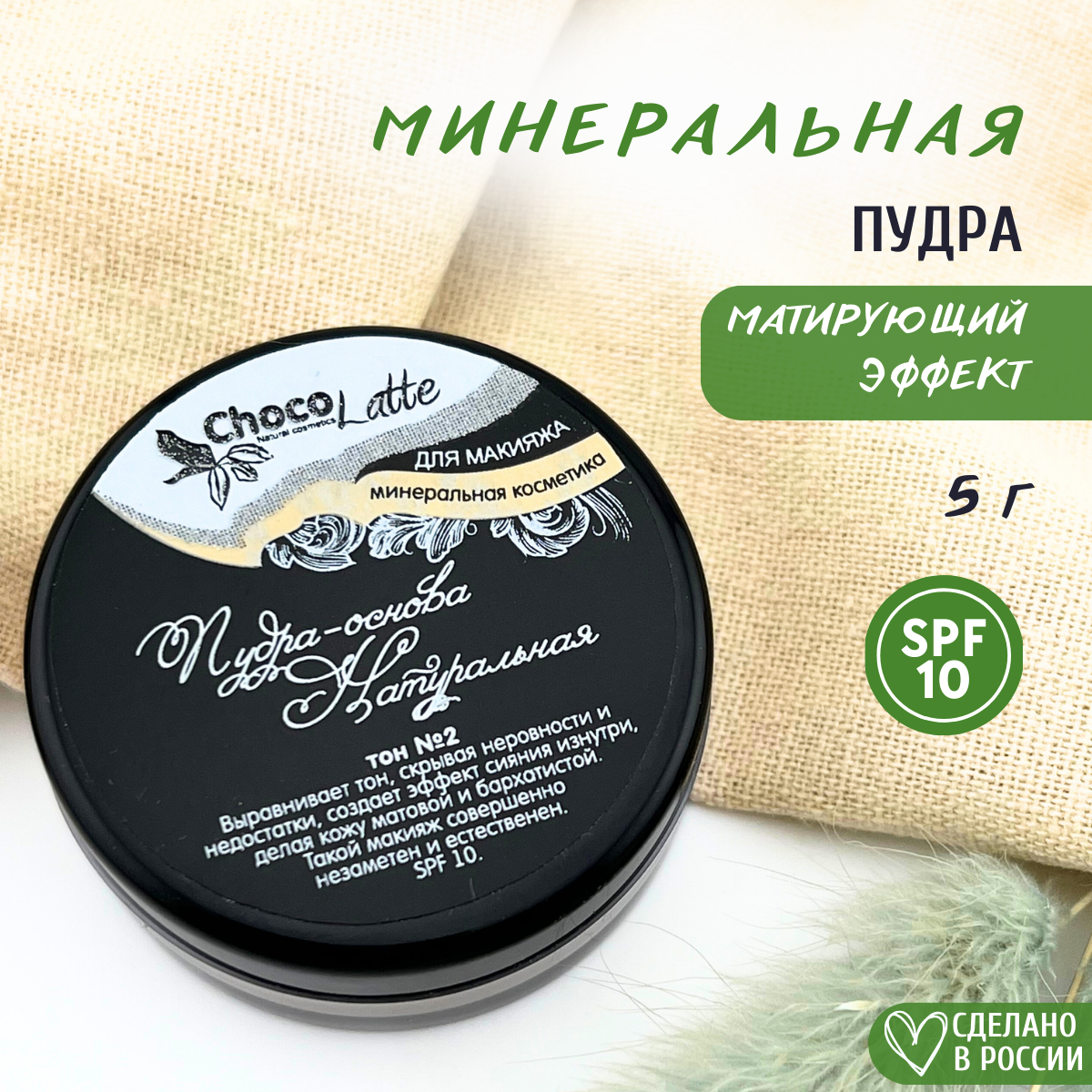 ChocoLatte Пудра-Основа Тон№2 натуральная, с матирующим эффектом, SPF 10, 10ml/5g