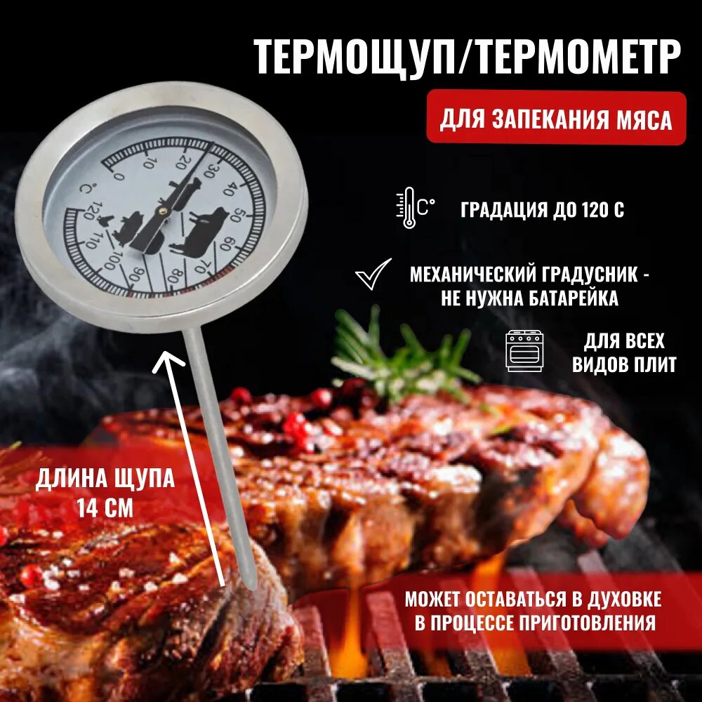 Купить Термометр кулинарный для запекания мяса со щупом иглой 14 см из нержавеющей стали