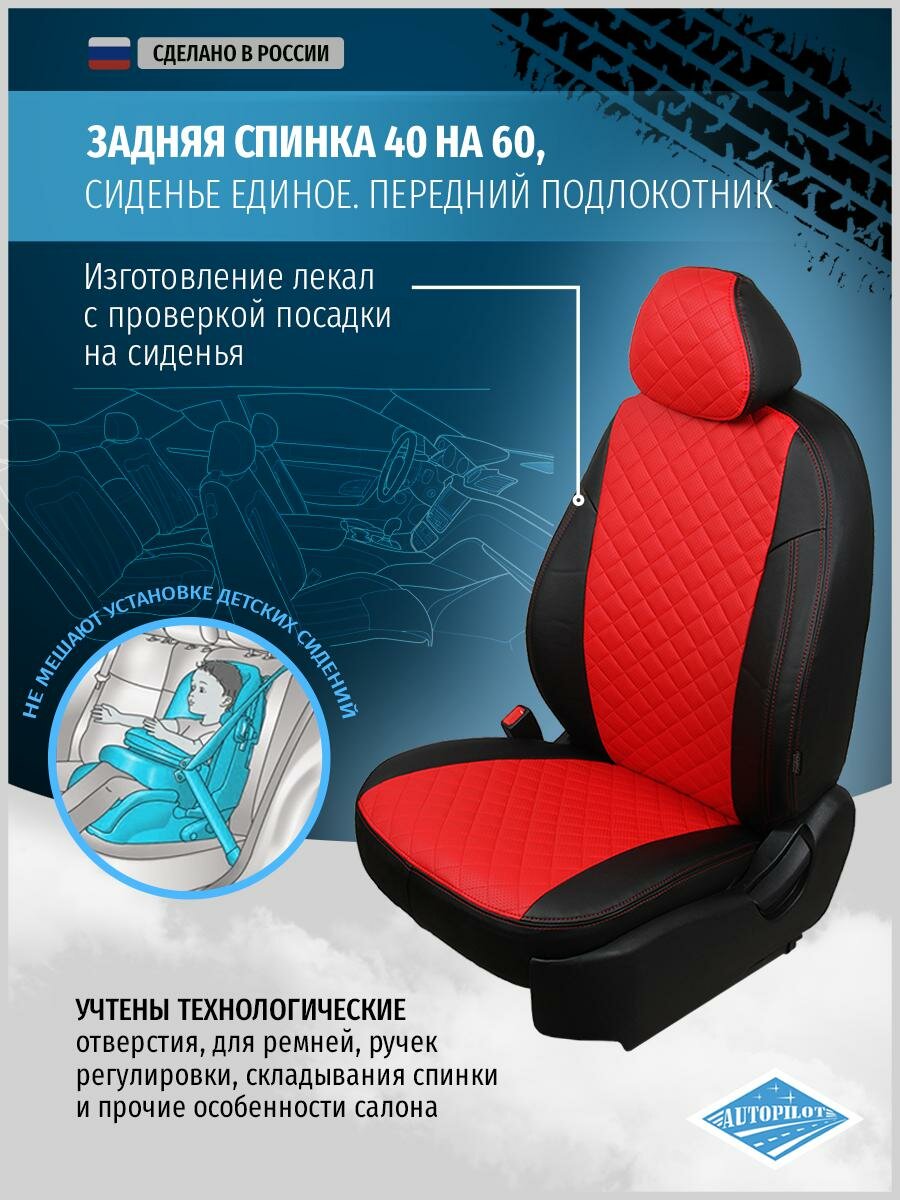 Чехлы для Renault Kaptur 1 2016-2020 Автопилот Красный Экокожа с ромбом re-kt-kt-chekr-r