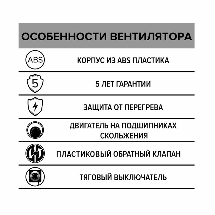 Вентилятор осевой / вытяжка в ванную / вытяжка в туалет d100 мм, белый