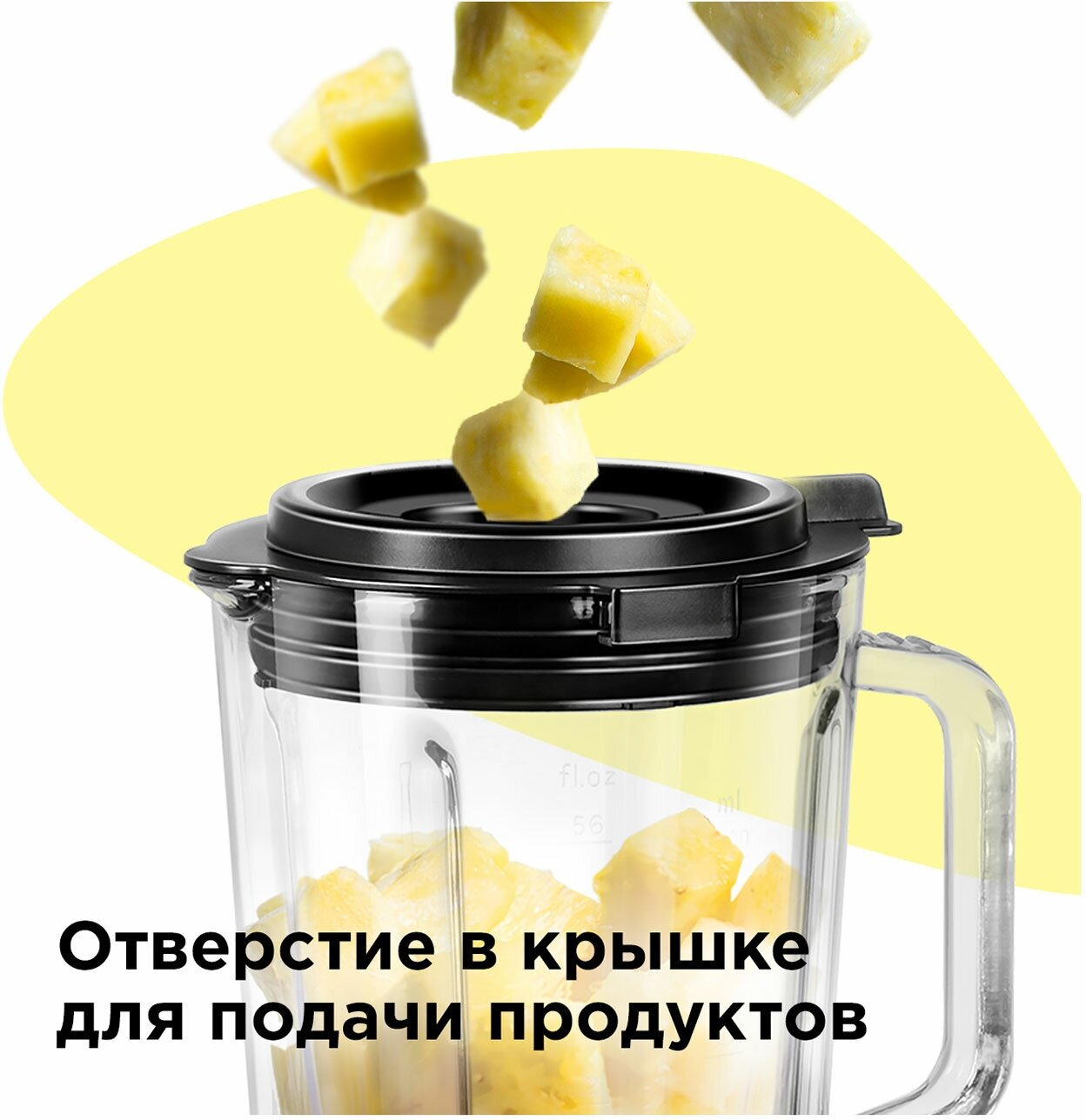 отличный блендер, мощности хватает, есть функция реверса. так де есть отверстие доя дополнительной до загрузки во время работы. отличное качество пластика и стекла. Приемлемая цена.