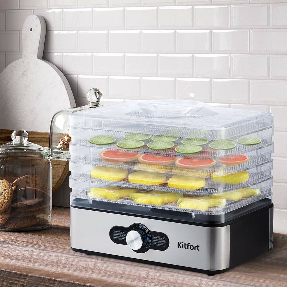 Сушилка для овощей и фруктов KitFort KT-1913, черный, 5 поддонов