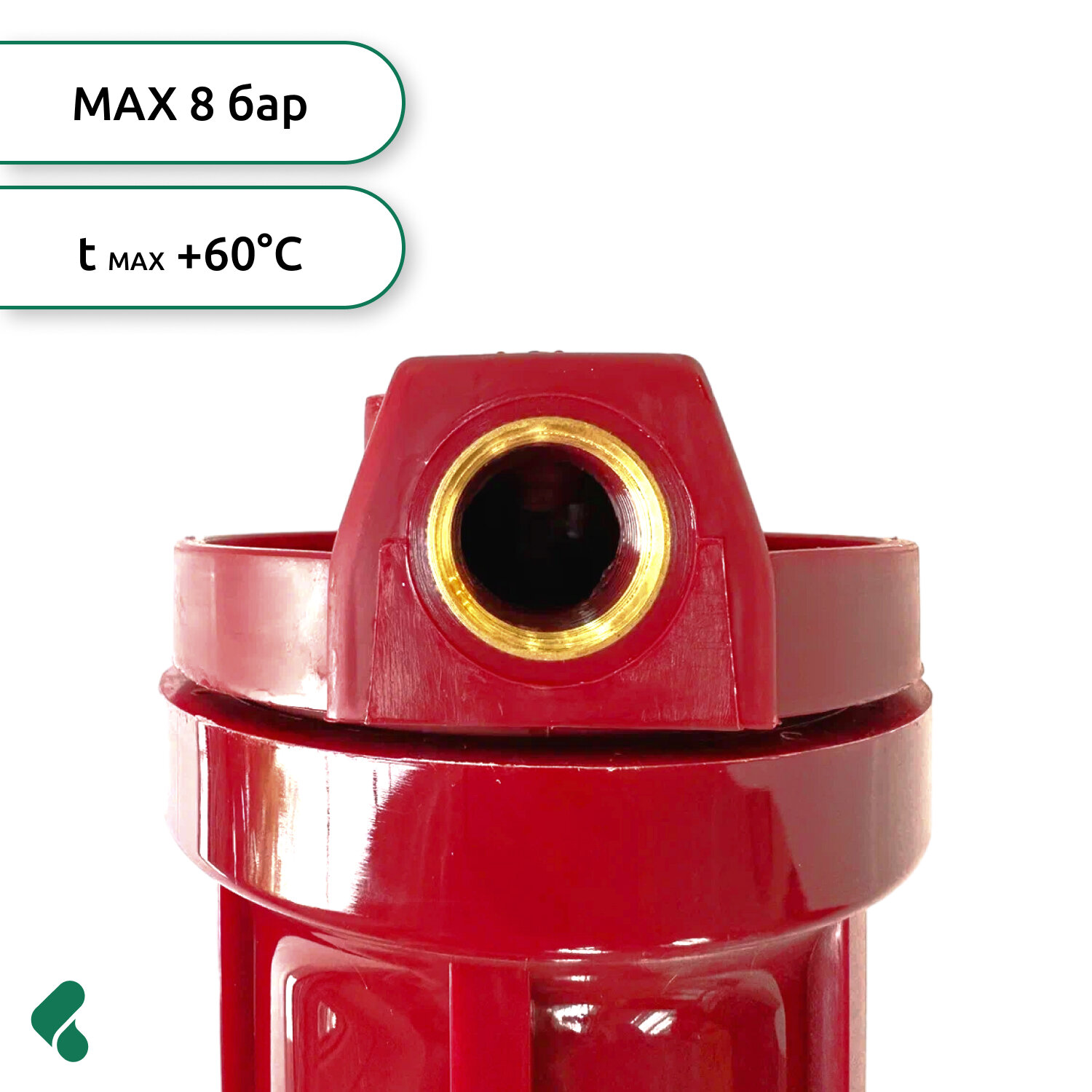 Аквабрайт Корпус для фильтра "Аквабрайт" АБФ-ГОР-12, 1/2", для горячей воды, ключ и крепеж, красный