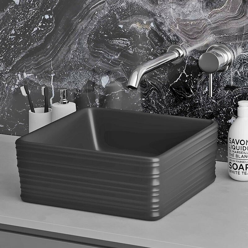 СохранитьРаковина Grossman GR-3026BM (39,5x39,5x15) чёрная матовая накладная прямоугольная интересное: