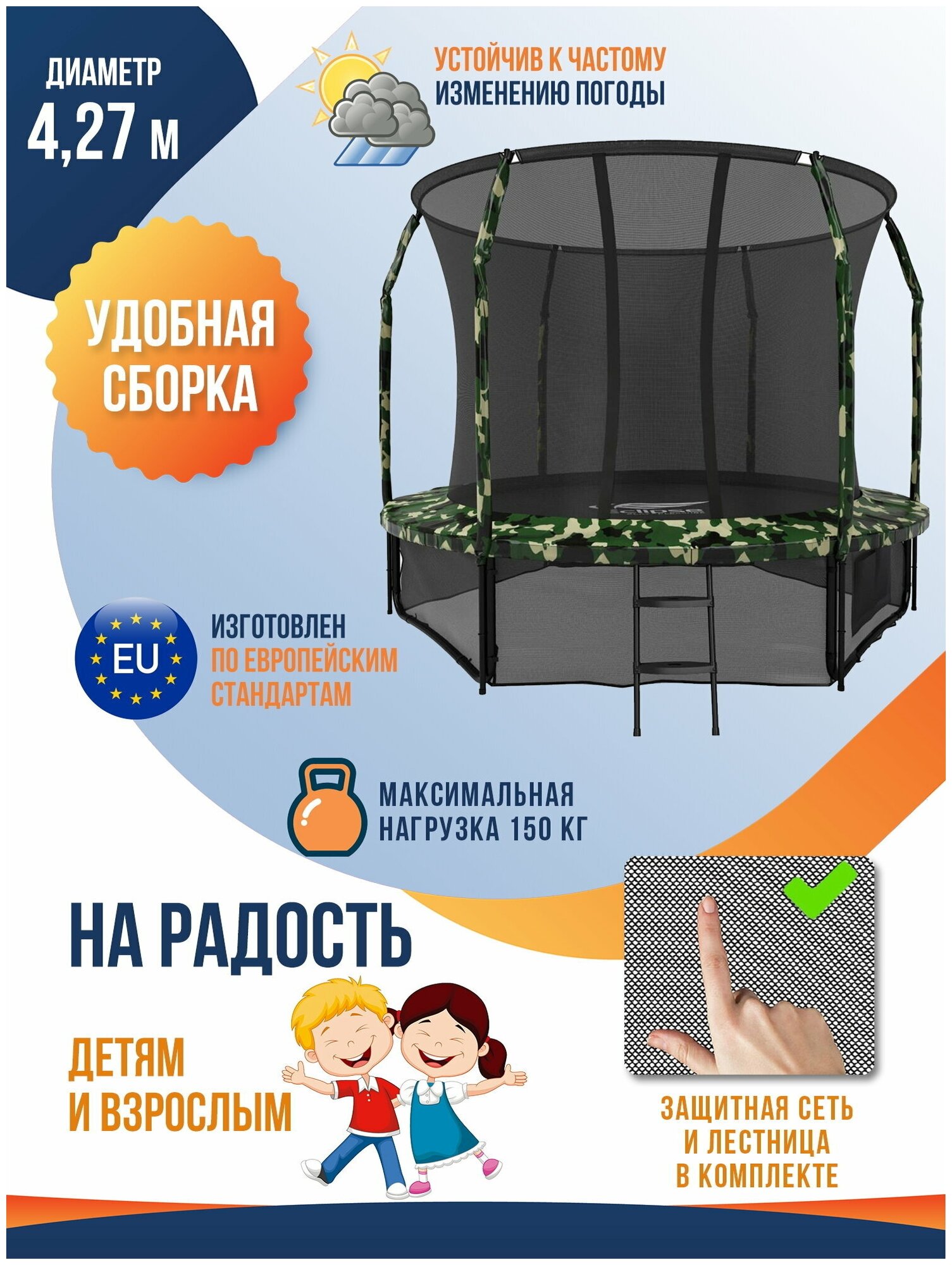 Каркасный батут Eclipse Space Military 14FT 426х426х255 см , хаки интересное: