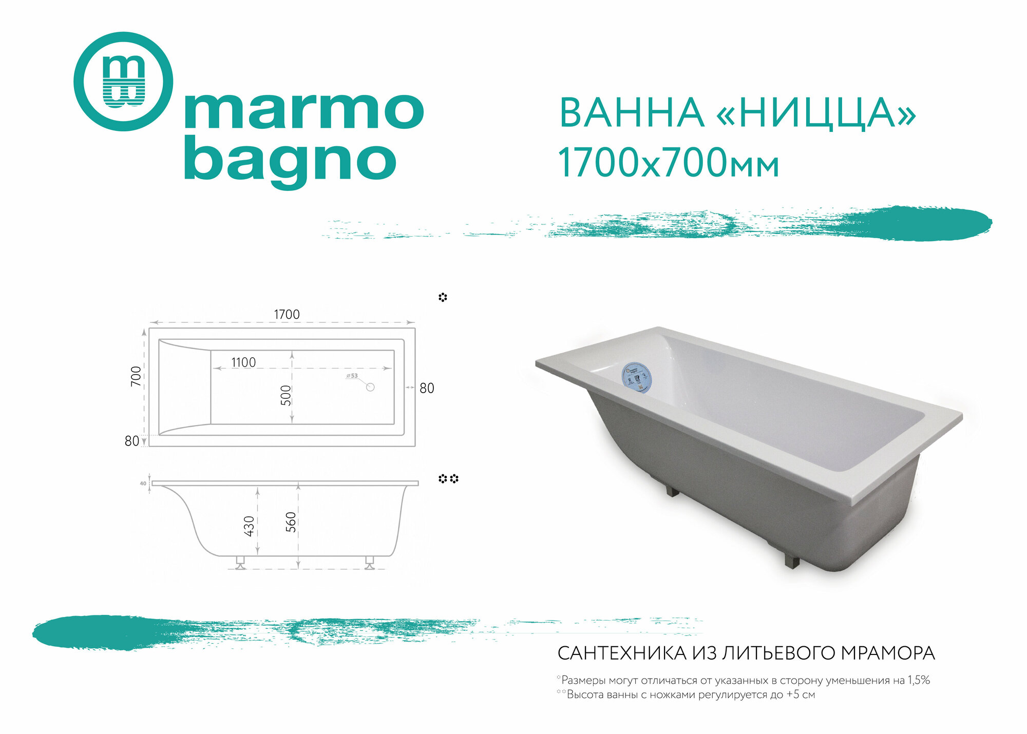 Ванна из литьевого мрамора Marmo Bagno Ницца 170х70 интересное: