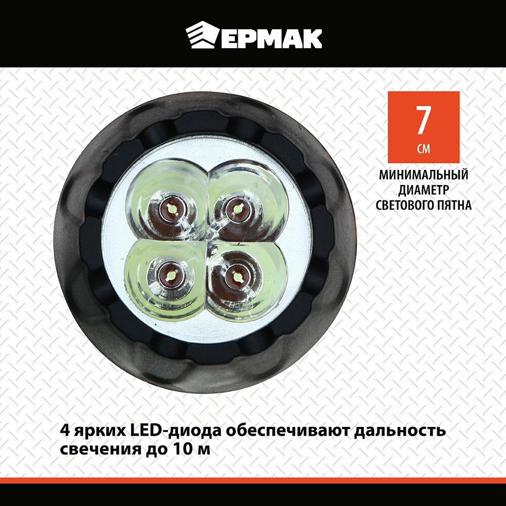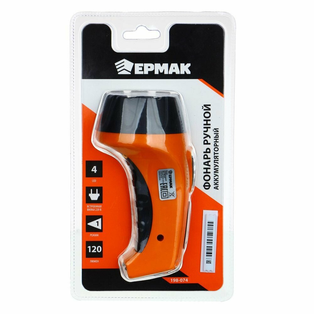 Купить Ермак Фонарь аккумуляторный 4 ярк. LED, вилка 220В, пластик, 13x5,3 см