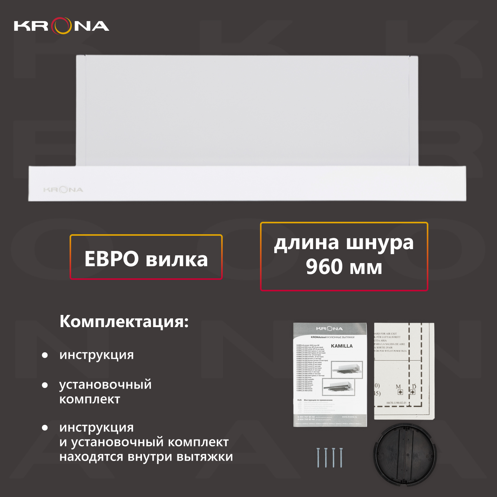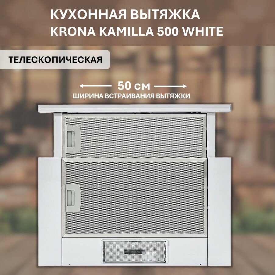 Встраиваемая вытяжка Krona Kamilla 500, управление кнопочное, белый [00007592]