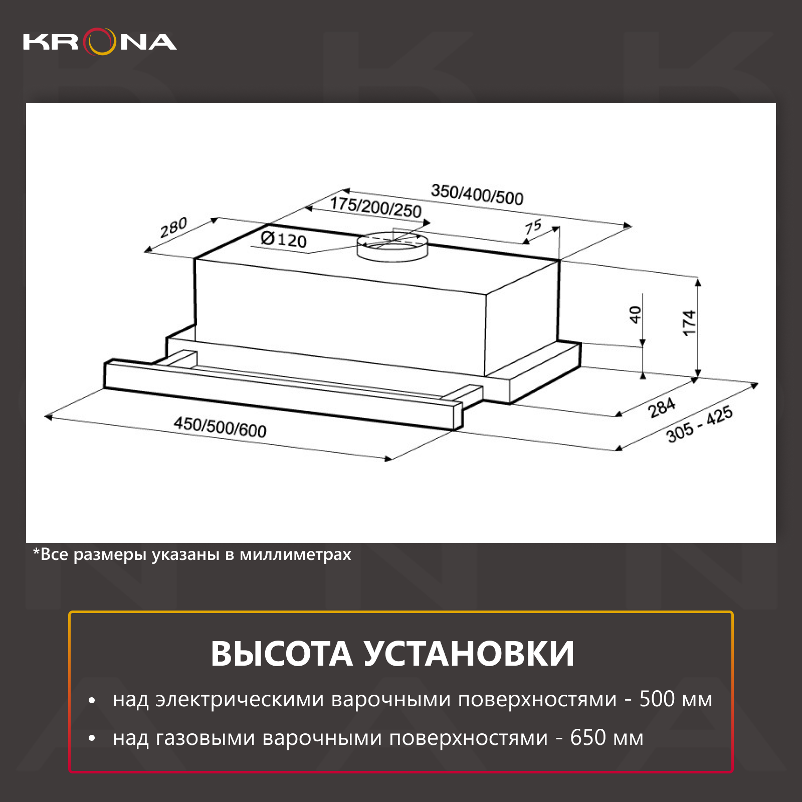 Встраиваемая вытяжка Krona Kamilla 500 BLACK .