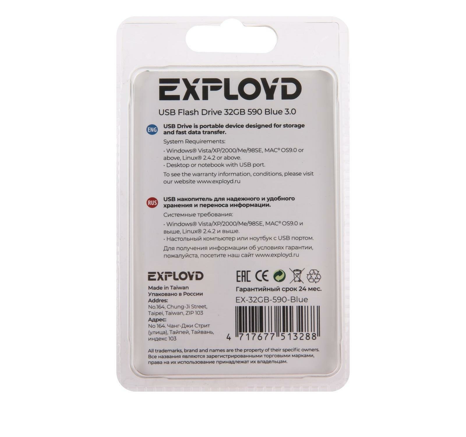 USB флэш-накопитель EXPLOYD EX-64GB-590-Blue USB 3.0, 64 Гб, синий