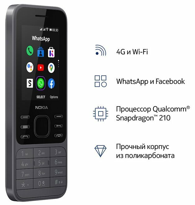 Телефон Nokia 6300 4G, Dual nano SIM, темно-серый интересное: