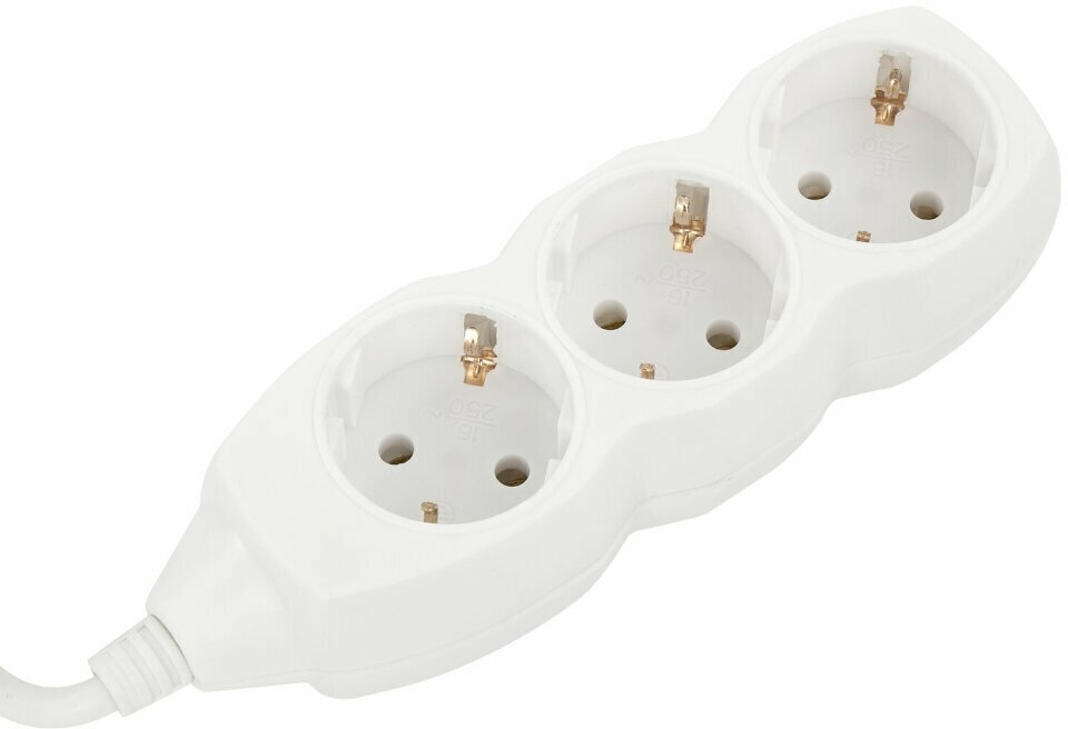 Удлинитель сетевой SONNEN U-131G, 3 розетки, c заземлением, 10А, длина 1,8 м, белый, 511431