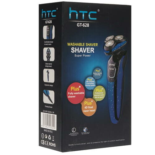 Купить Бритва электрическая HTC GT-628 (синий, 3 головки, роторная)