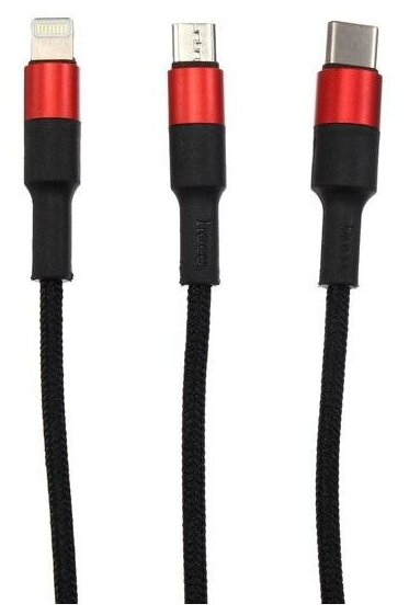 Купить Кабель Hoco X26 Xpress USB - Lightning/MicroUSB/USB Type-C, 1 м, 1 шт., черный/красный