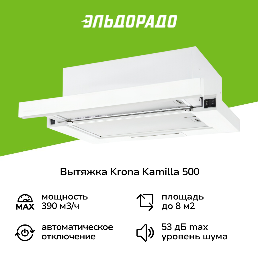 Встраиваемая вытяжка Krona Kamilla 500, управление кнопочное, белый [00007592]