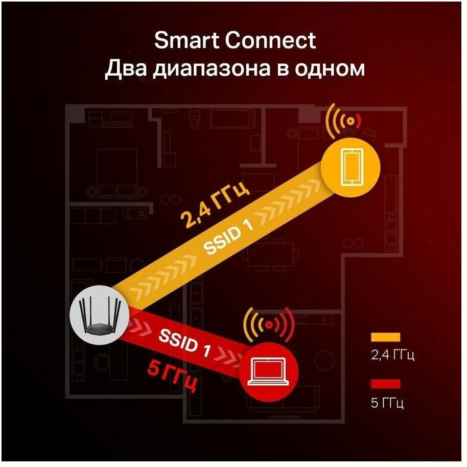 Mercusys MR50G AC1900 Двухдиапазонный Wi-Fi роутер, до 1300 Мбит/с на 5 ГГц + до 600 Мбит/с на 2,4 ГГц, поддержка 802.11ac/a/b/g/n, Beamforming, MU-MIMO, Smart Connect, 1 10/100/1000Мбит/с WAN