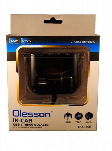 Разветвитель автоприкуривателя 1631 Olesson 2 гнезда прикуривателя, 1 USB гнездо