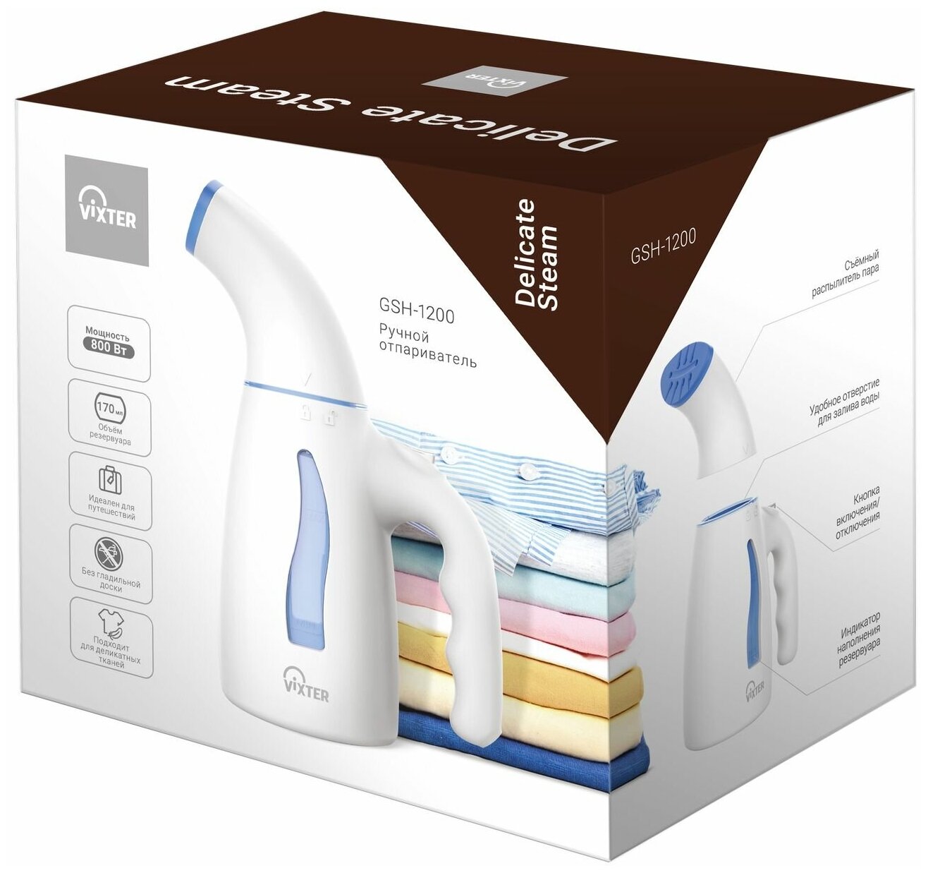 Отпариватель ручной VIXTER GSH-1200 [800 Вт, поток пара: 22 г/мин, объем: 0.17 л]