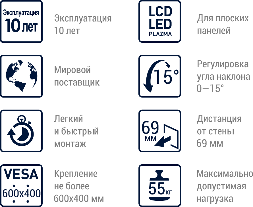 | Отзыв: | Покупался для телевизора 55 дюймов и весом 20 кг. |