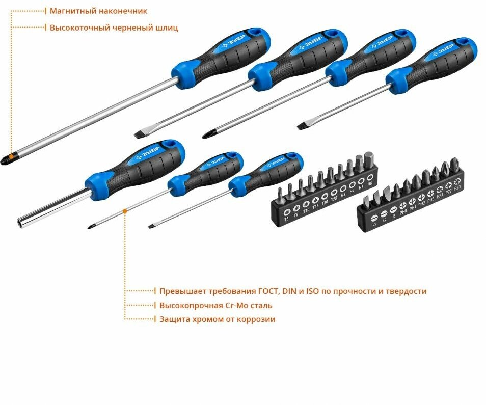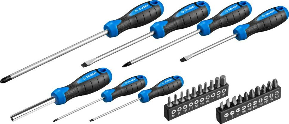 Набор отверток ЗУБР 25240, 27 предм., синий/черный