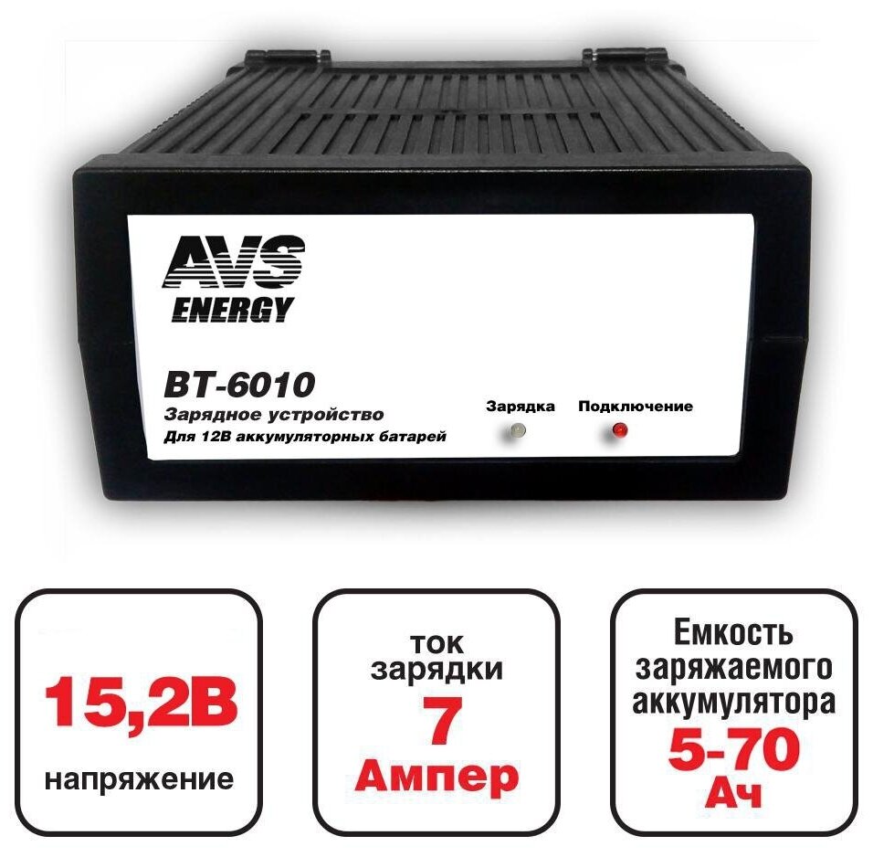 Зарядное устройство AVS BT-6010 для автомобильного аккумулятора (7A) 12V, A07076S