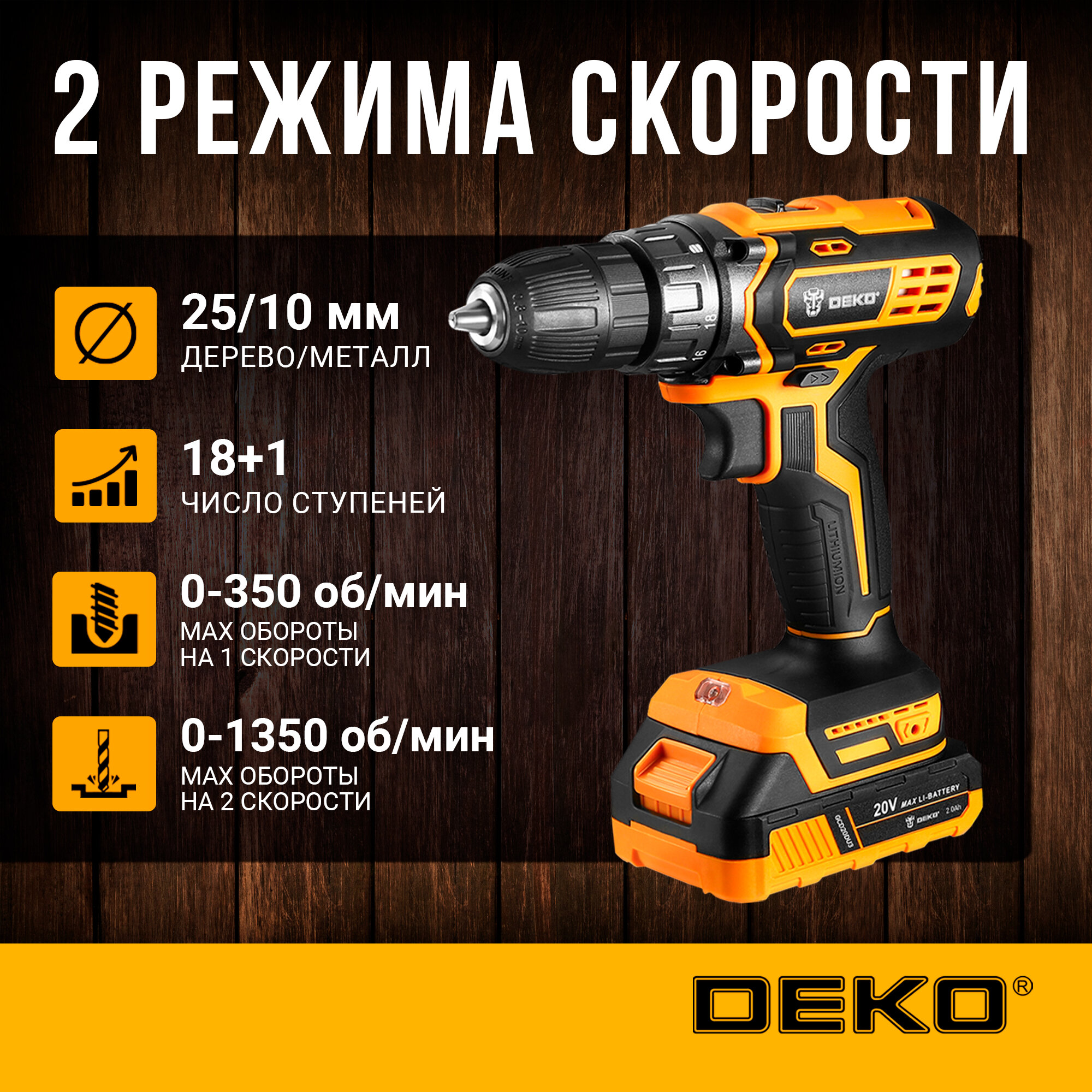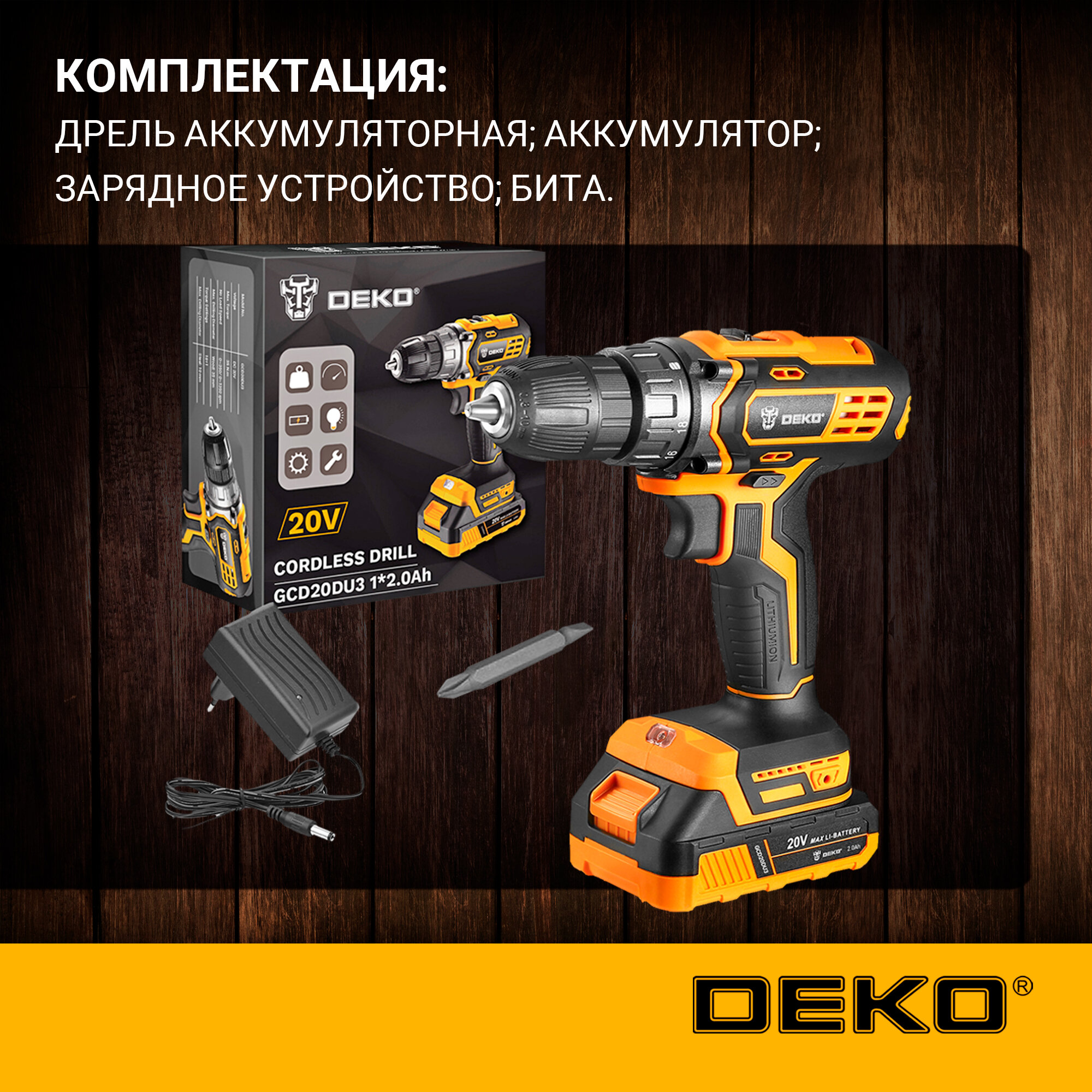 Купить Дрель-шуруповерт аккумуляторная DEKO GCD20DU3, 20В, 1*2.0Ач