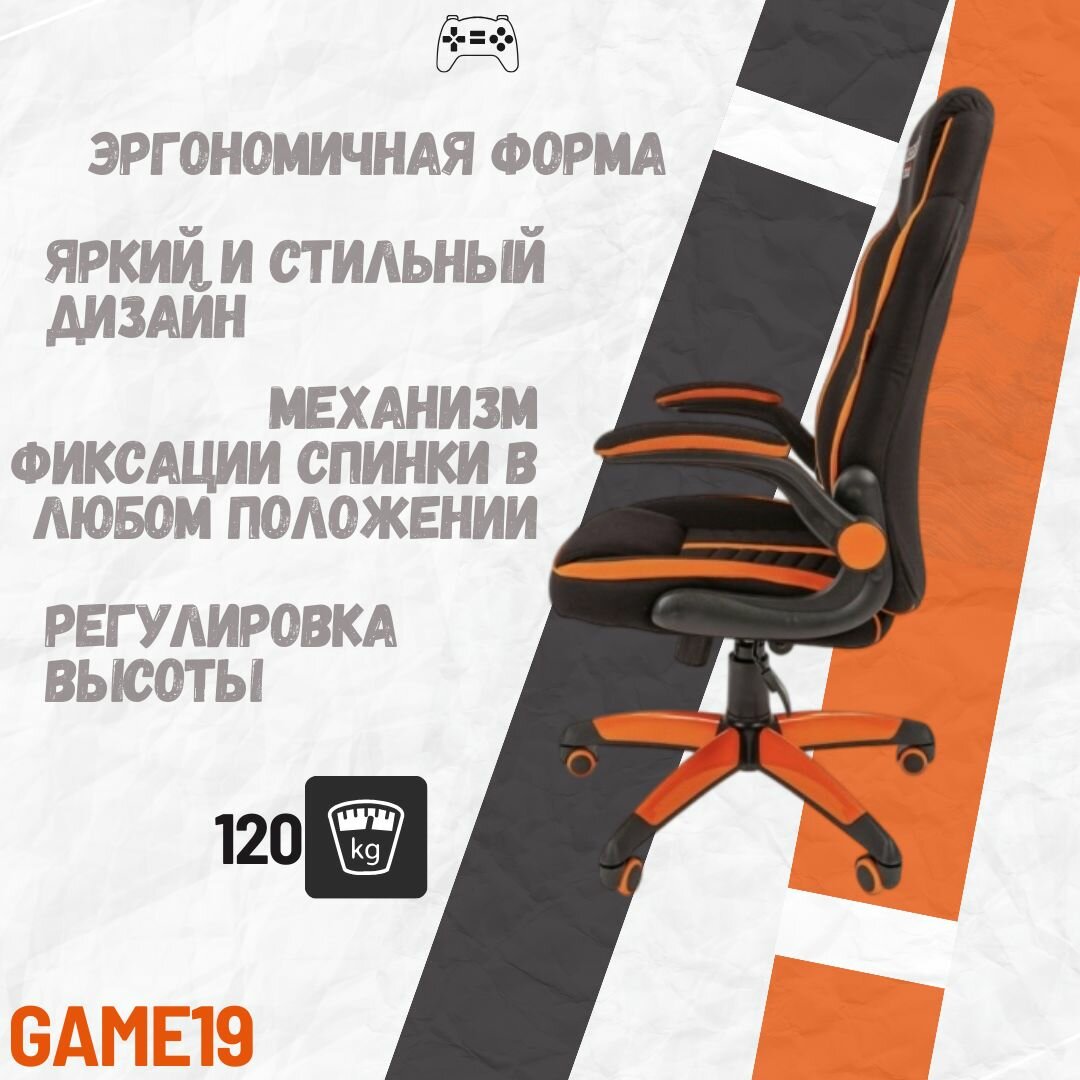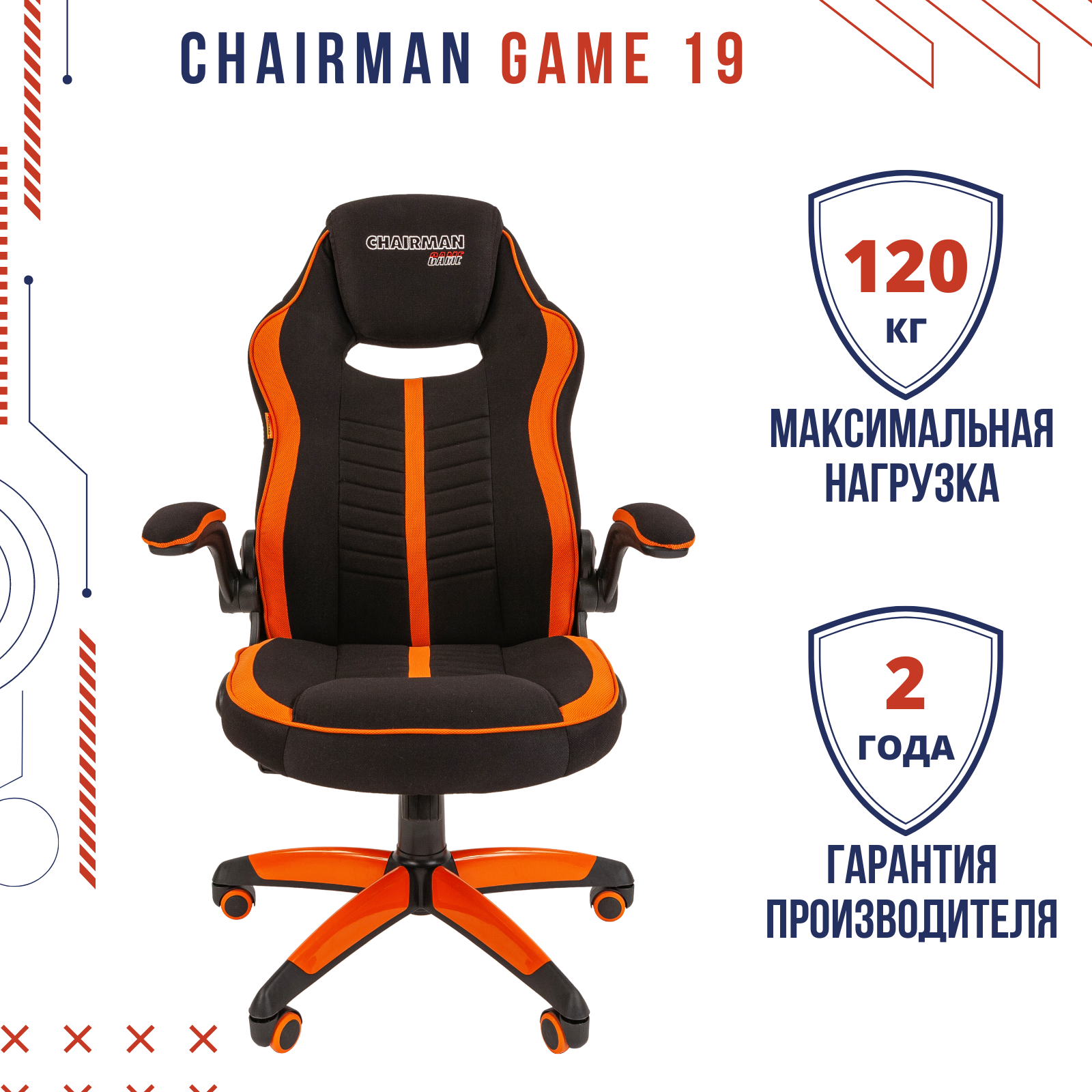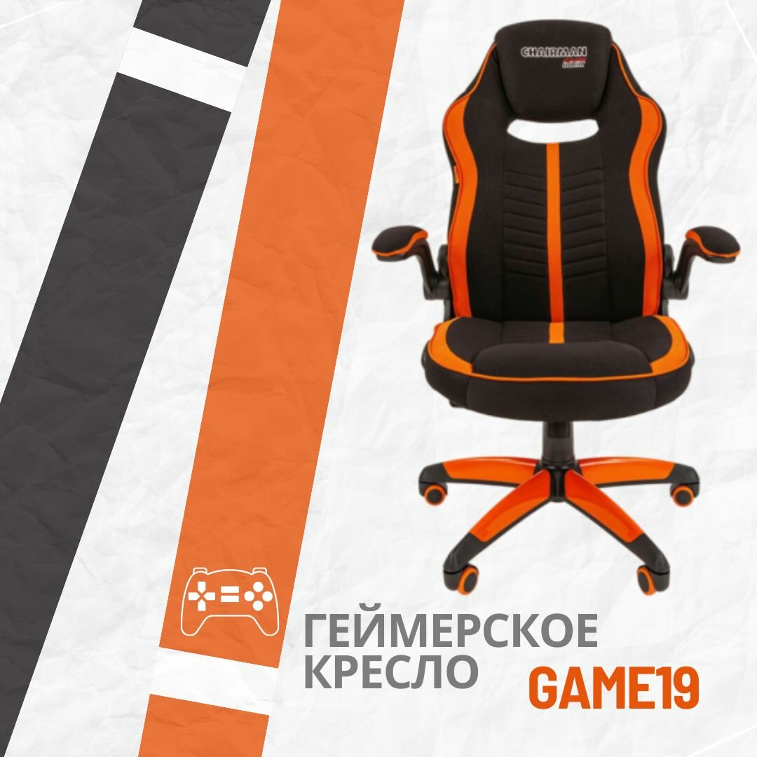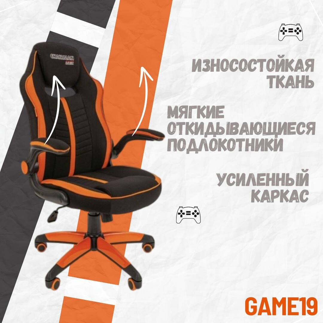 Купить Игровое компьютерное кресло с откидными подлокотниками CHAIRMAN GAME 19, ткань, черный/оранжевый