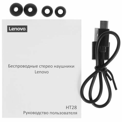 Гарнитура LENOVO HT28, Bluetooth, вкладыши, черный [ут000023561]