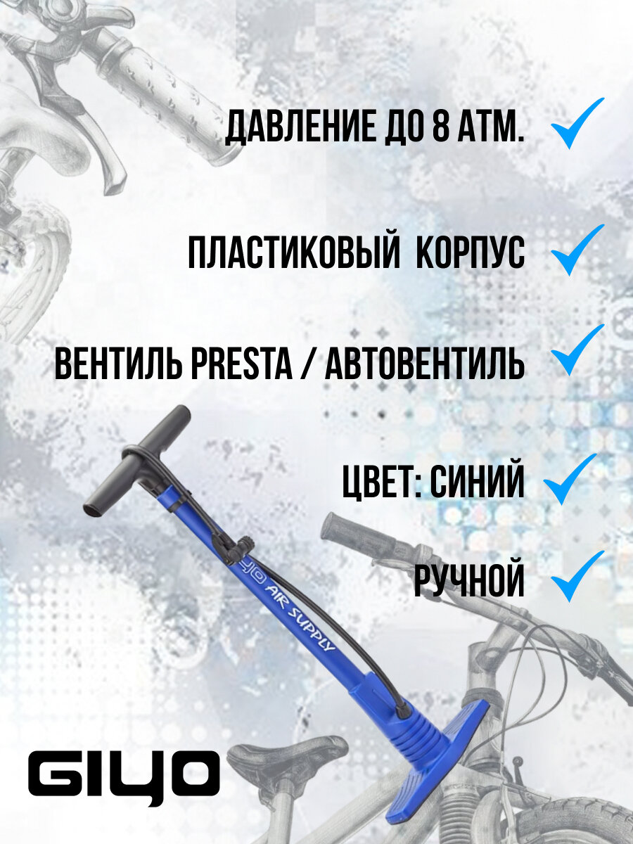 Насос GF-44 Giyo ручной напольный, пластик, синий, 36470 интересное: