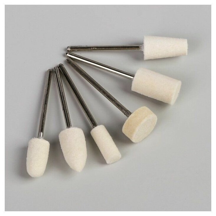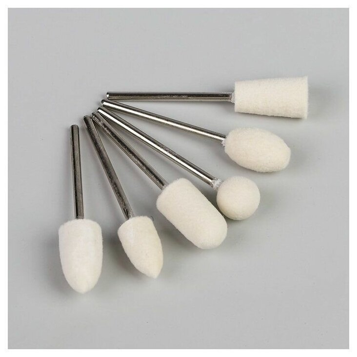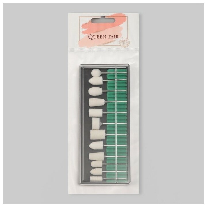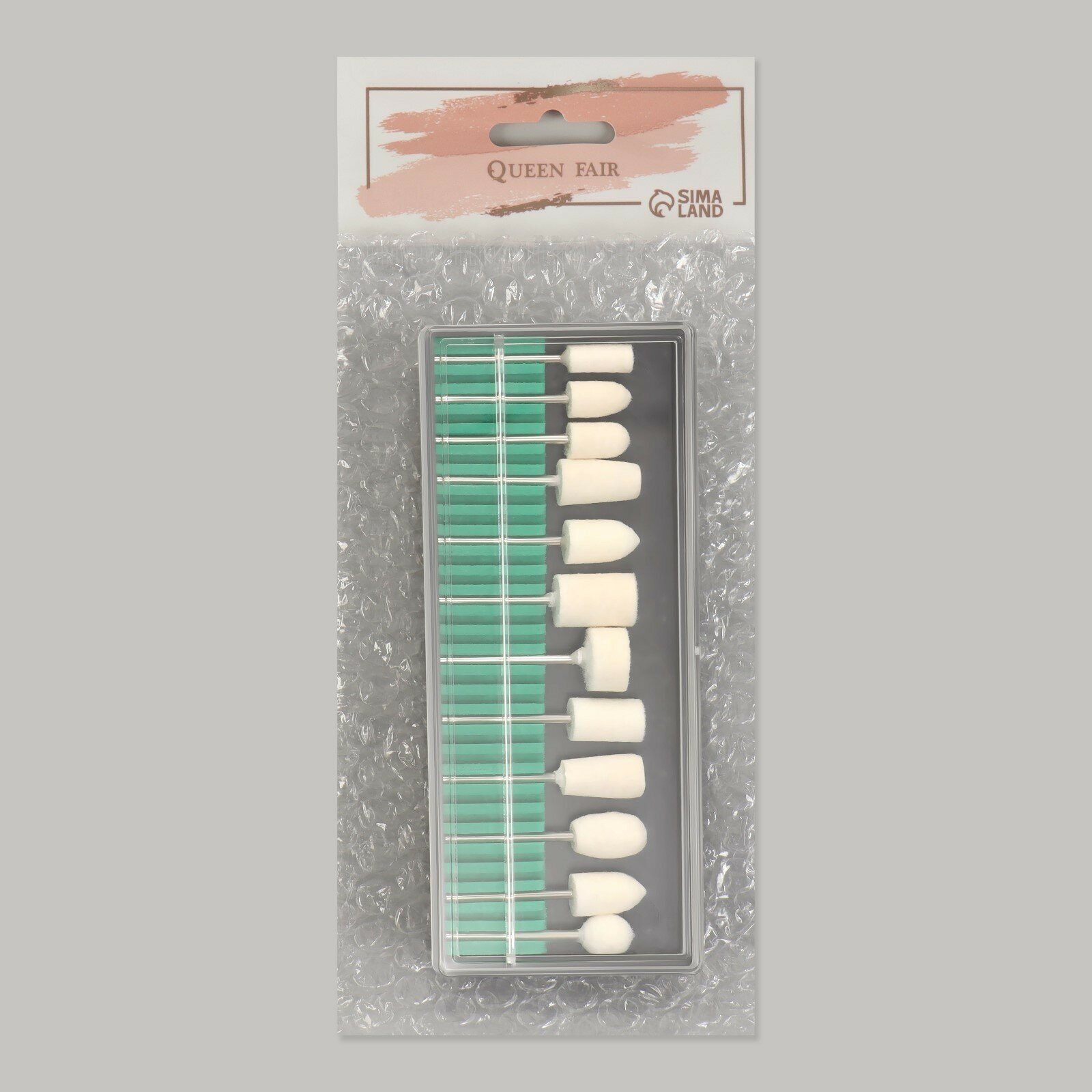 Набор фрез для маникюра и педикюра Queen Fair войлочные (3004412), 12 шт., белый/серебристый