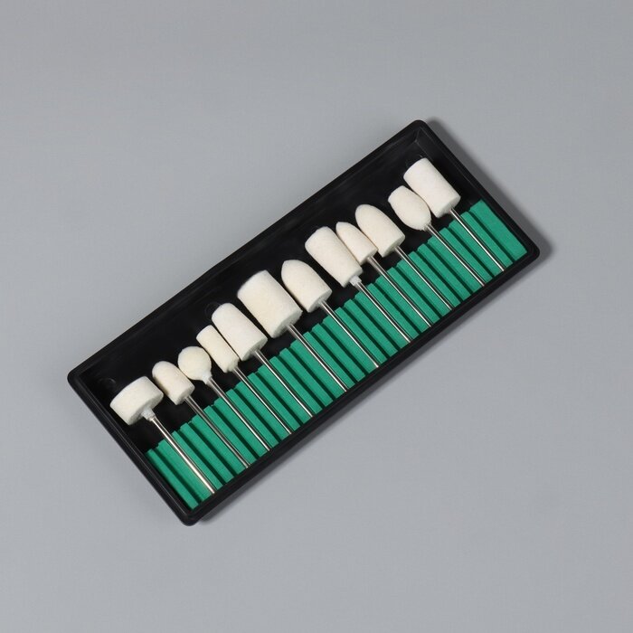 Фрезы войлочные для маникюра в пластиковом органайзере, 12 шт